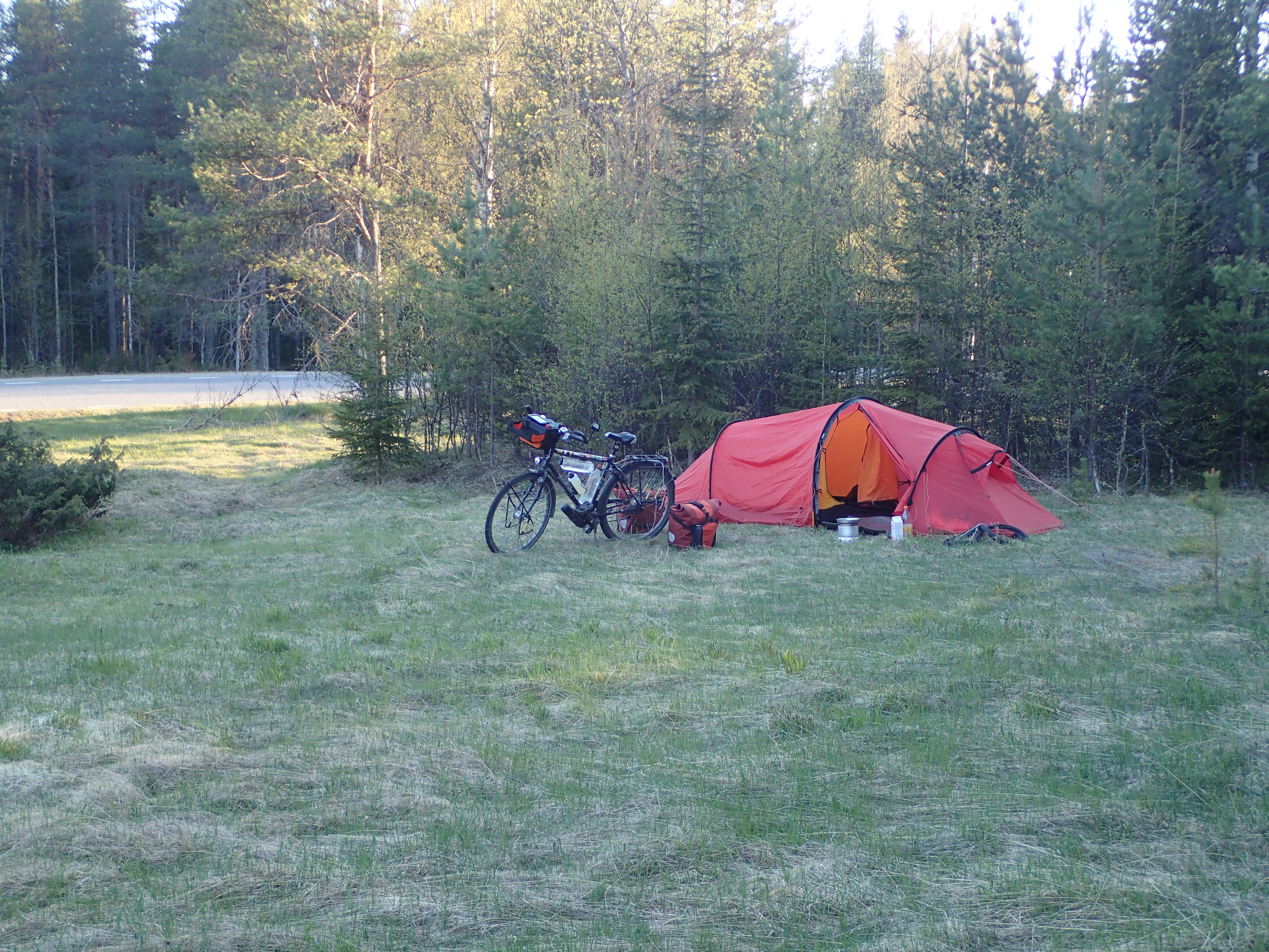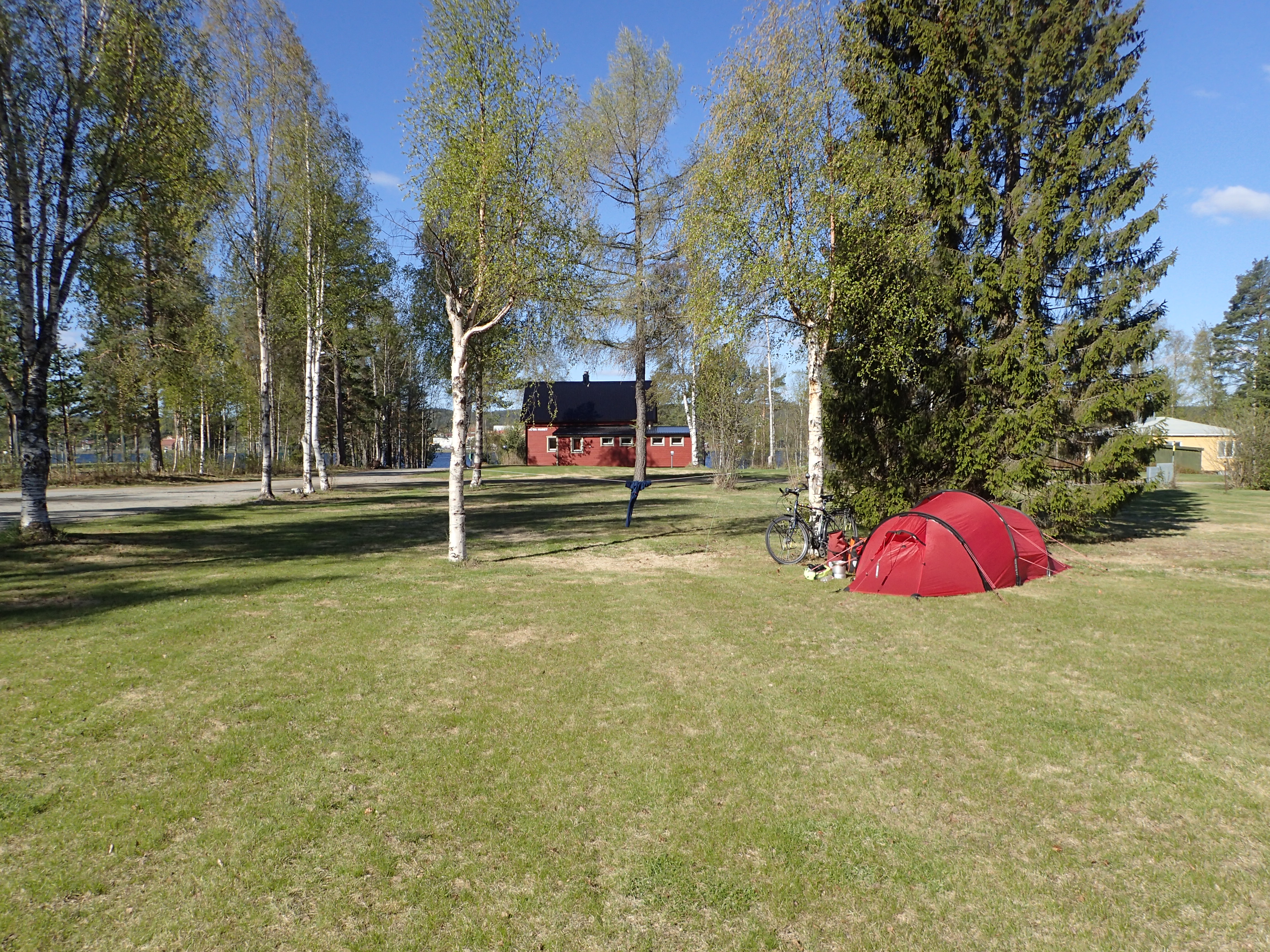Heute habe ich dann seit vielen Tagen mal wieder einen Reiseradler getroffen. Ein Schwede aus Skellefteå, der seit 1. Mai Rentner ist und nun seine Freunde in südlicher Richtung in Schweden besuchen möchte und am Ende nach Aarhus in Dänemark zu einer Senioren-Leichtathletik-Wettkampfveranstaltung möchte. Er hatte auch Zeltausrüstung dabei. Für ihn war es aber erst der zweite Reisetag.