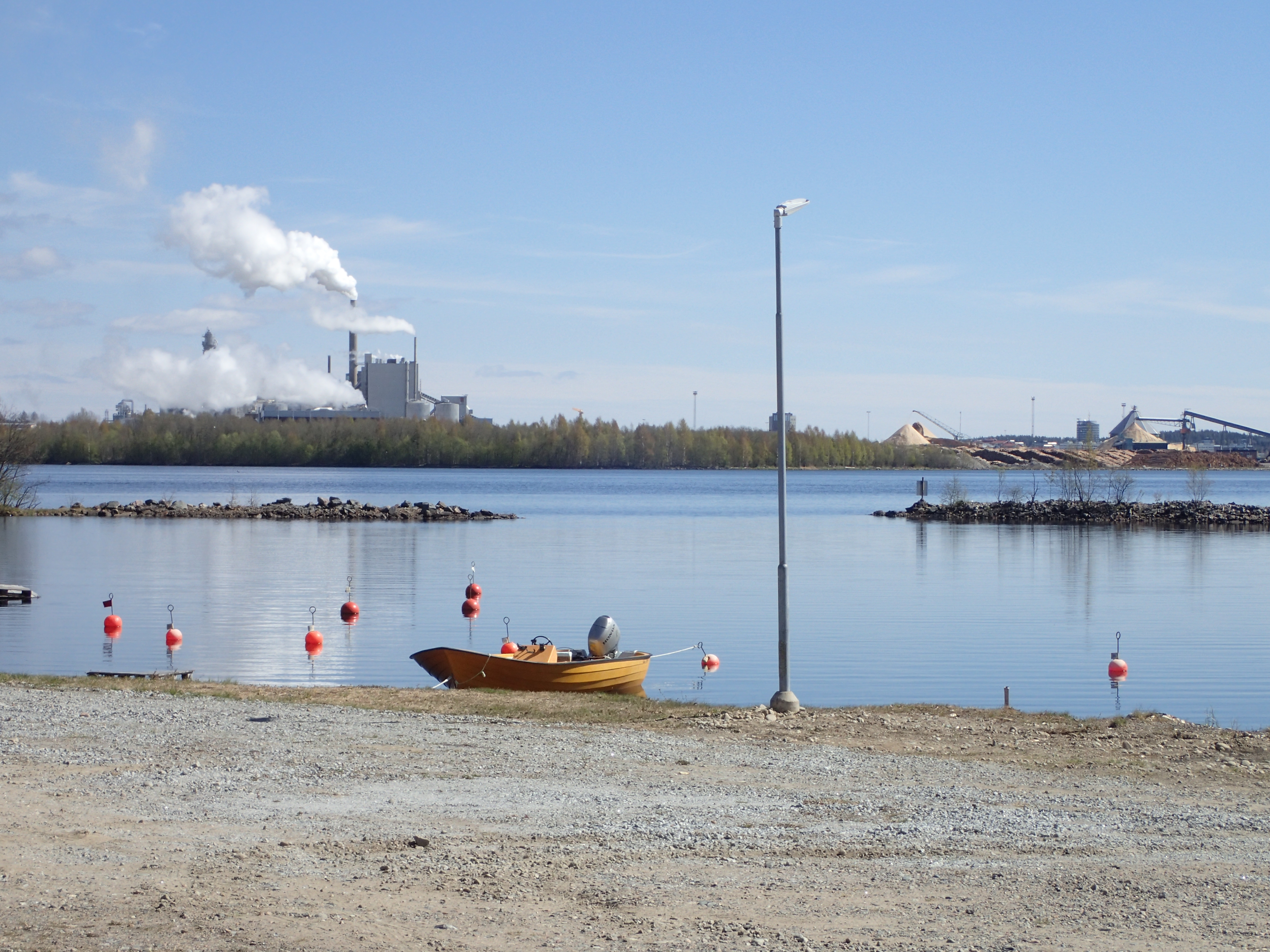 Das erste Foto zeigt den Campingplatz bei Piteå. Foto 2 sind dann Industrieanlagen die mit sehr großer Wahrscheinlichkeit Holz als Rohstoff verarbeiten. Piteå liegt direkt an der Ostsee und so können die erzeugten Produkte verschifft werden. Das Foto 3 ist die Fußgänger und Radfahrerbrücke, die mit etwas Abstand zur E4 über den Piteälven führt. Foto 4 zeigt ein schönes, rotes zweigeschossiges Haus auf dem Land.