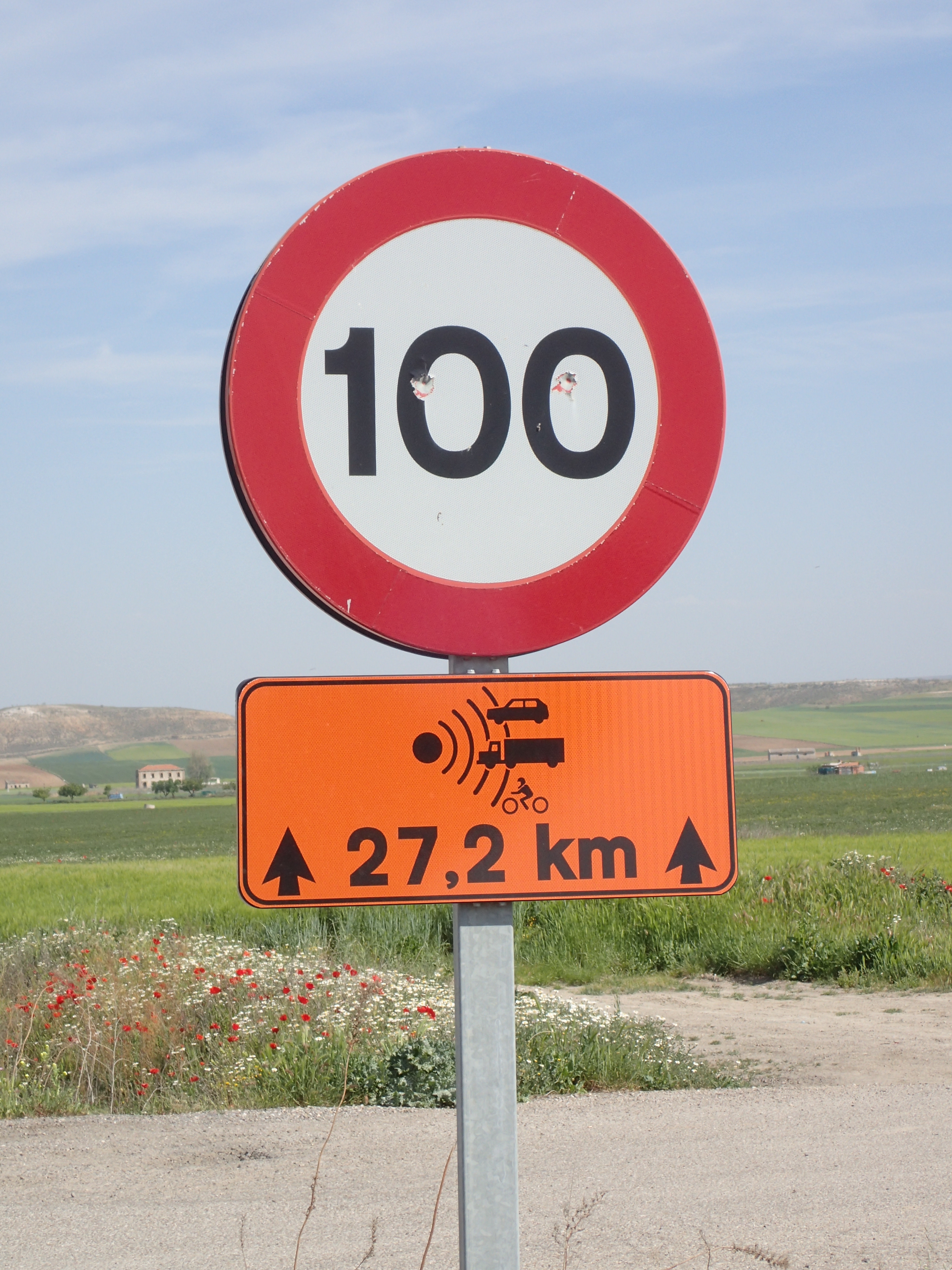endlich wieder Lese,- und Fotoberichte von dir, ich hatte schon vermutet, dass du in Madrid bist. Das 3. Bild bedeutet, dass du die nächsten 27,2 km nicht über 100Km/h fahren darfst und du die Nebenspuren immer im Blickfeld haben solltest :). In Büdelsdorf suchen wir die Ostereier im Regen und ich wünsche dir schöne Ostern und immer gute Wegstrecken.