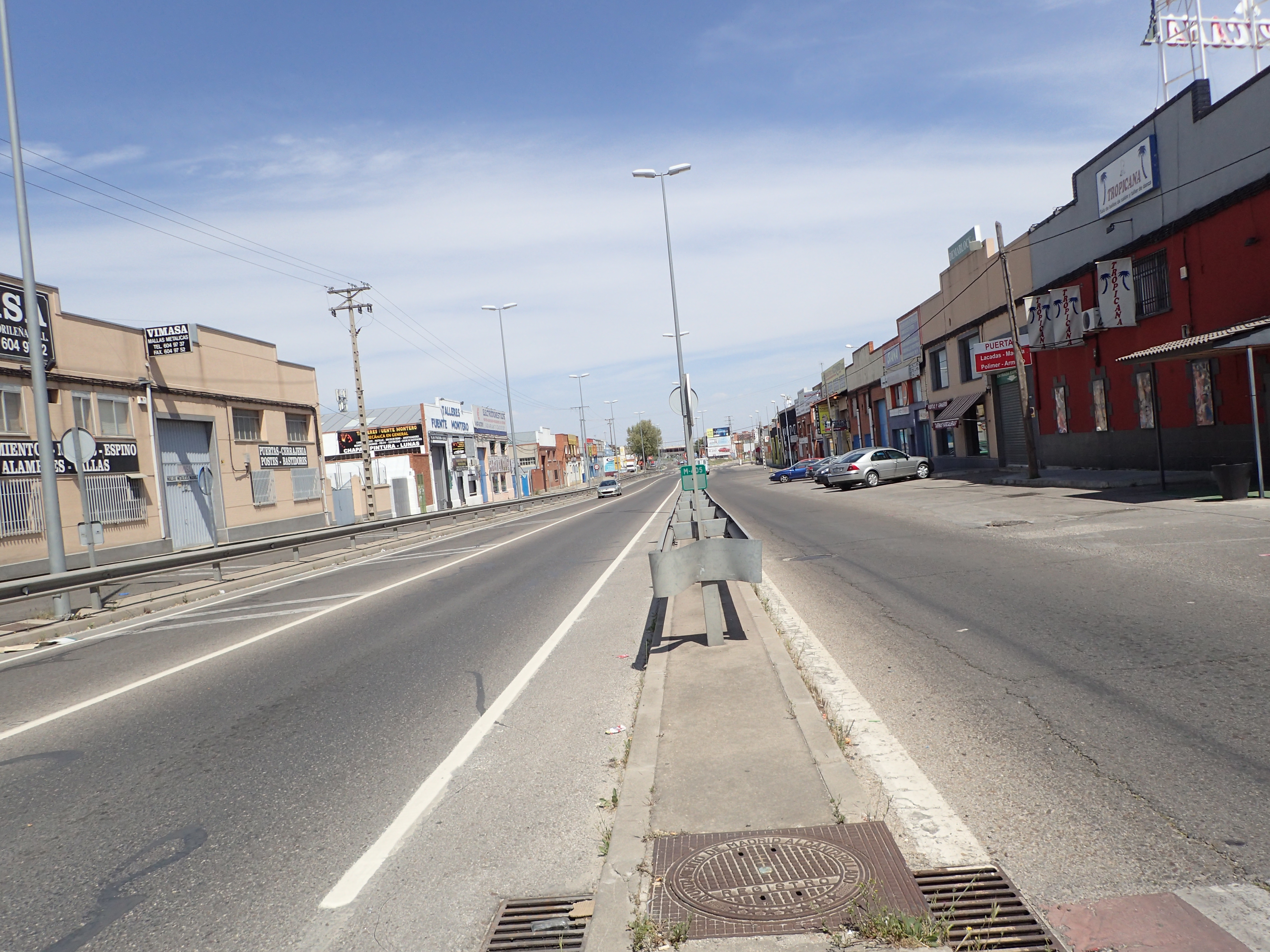 Am Gründonnerstag war bereits morgens das Ziel klar. Es sollte mit ca. 100km Entfernung der Campingplatz im Nordteil von Madrid werden. In einem Bogen noch einmal etwas durch Toledo ging es dann auf nummerierten Nebenstraßen (keine Experimente mehr wie quer durch den Wald) Richtung Madrid. Die Mautpflichtige Autobahn war an diesem Feiertag in Spanien vollständig leer und auf den Nebenstraßen war auch wenig Verkehr. Einige Höhenmeter waren auch wieder zu überwinden, aber wenn ich nach dem Anstieg anschließend die Energie auch in Geschwindigkeit bergab umsetzen kann, komme ich ganz gut voran. Durch den Feiertag war in den Gewerbegebieten am Rande Madrids kein Verkehr. Abschnittsweise bin ich auf vierspurigen Straßen ganz allein unterwegs gewesen. Die wenigen, vorhandenen Radwege habe ich deshalb auch ignoriert. Das war bisher mein Tag mit der besten Netto-Durchschnittsgeschwindigkeit. Für die 100km brauchte ich von 10:00 Uhr bis 17:00 Uhr.